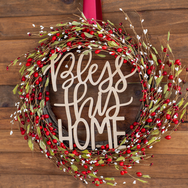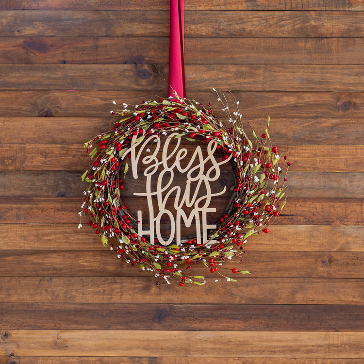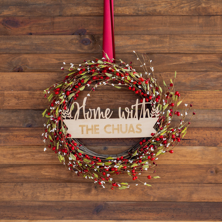 Red Mistletoe - Wreath with Ready Made Wooden Plaque