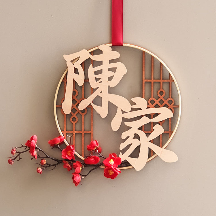 Eternity Loop with Family Plaque - Dark Red Cherry Blossom