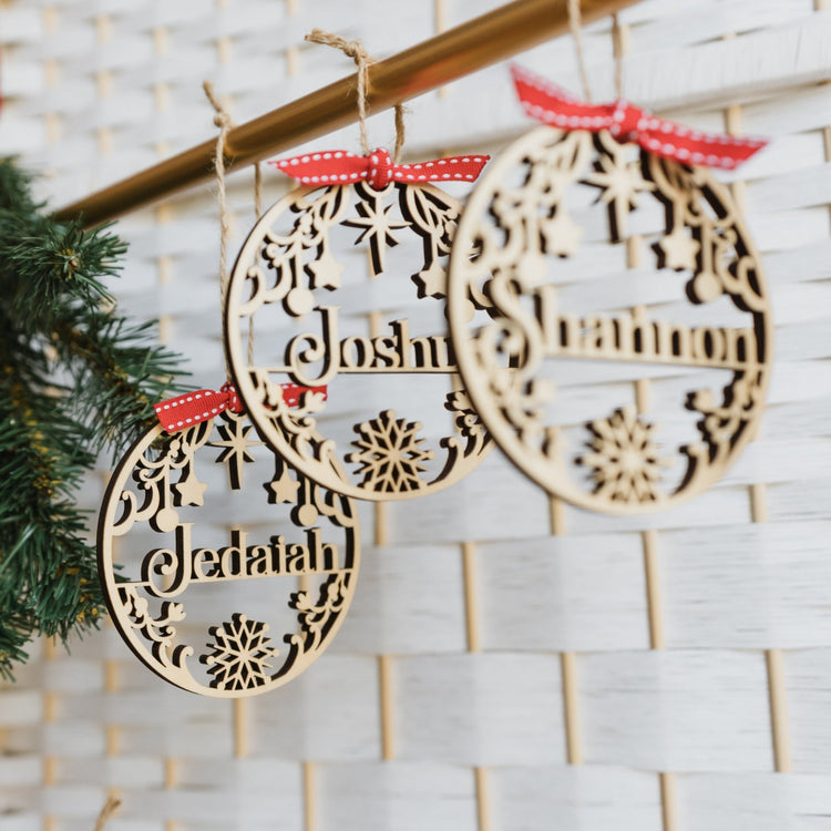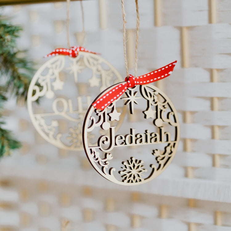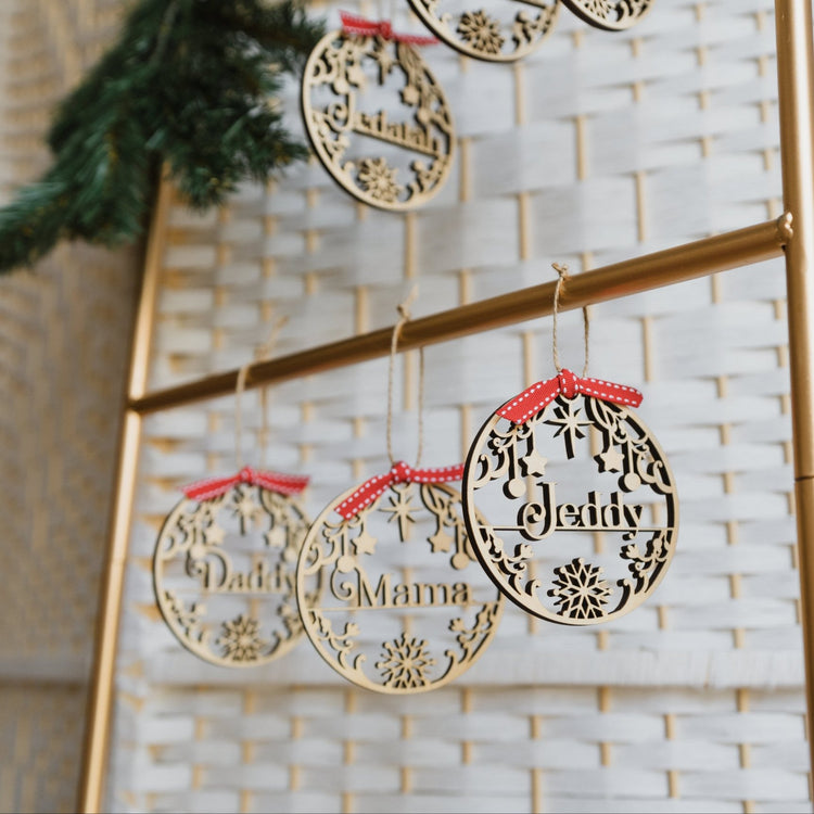 Accentuate your tree with the natural elegance of our wooden ornaments. Hang these personalised ornaments to add a beautiful pearlescent glow to your Christmas decorating. When ordering please just add your personalisation details in the box below.