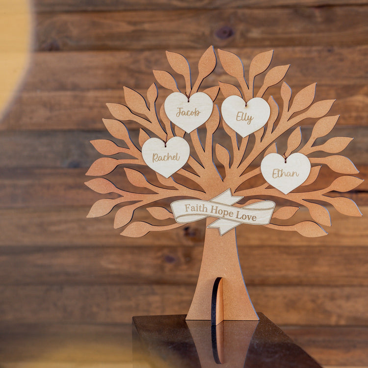 Celebrate love with legacy. The minimalist Wooden Christmas Tree hangs 6 personalised hearts. Comes flat-packed. Don't forget to include your personalisation in the box provided before checkout.