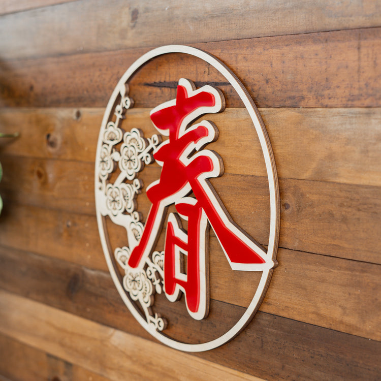 Ready Made Cherry Blossom Wooden Plaque - Chun