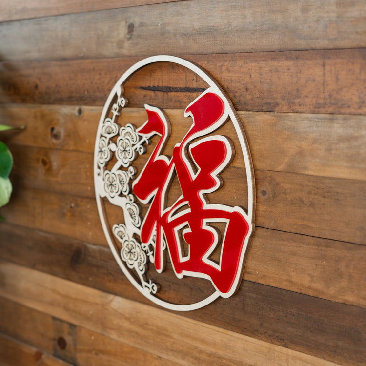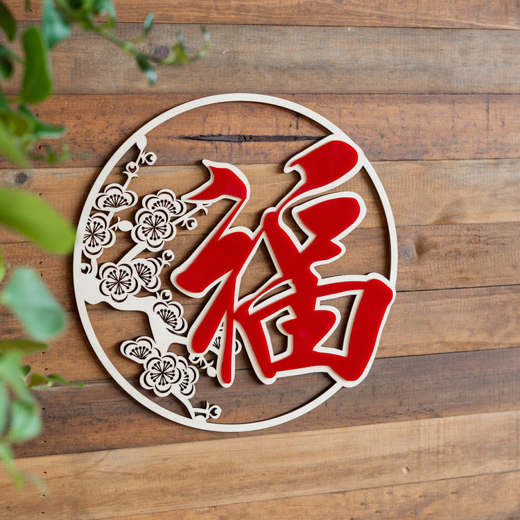 Ready Made Cherry Blossom Wooden Plaque - Fu