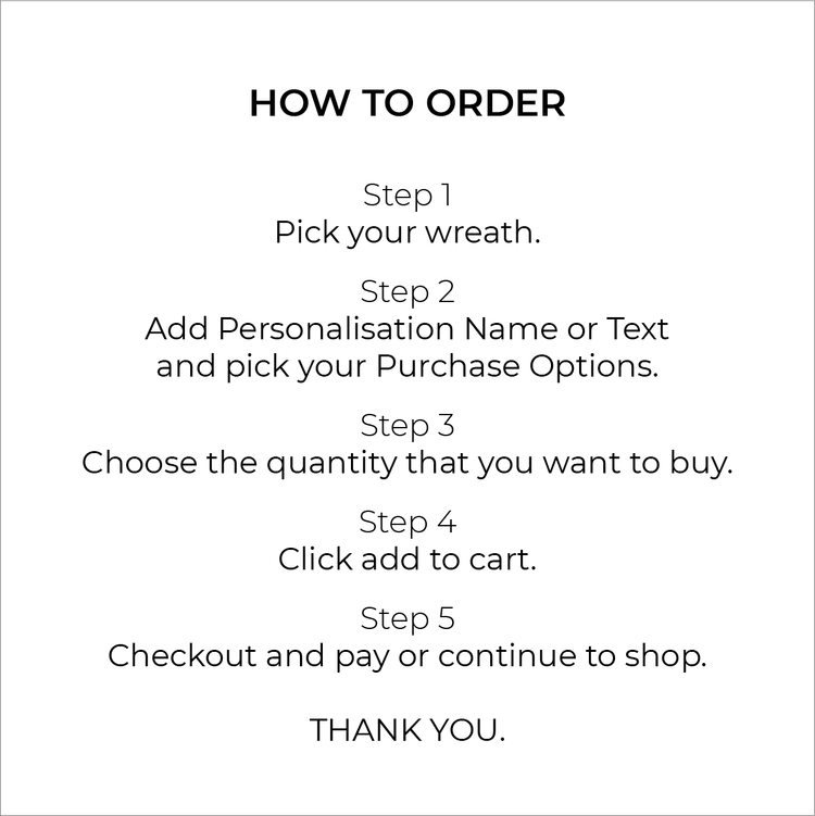 Select your wreath and we'll add a beautiful wooden plaque of your choice to give it that pretty personal touch. Don't forget to include your personalisation in the box provided before checkout.
