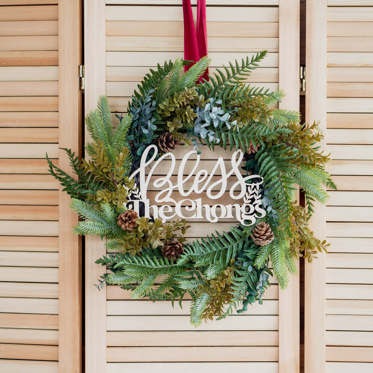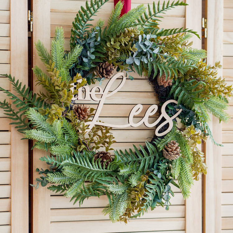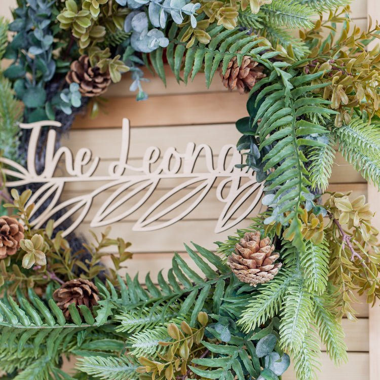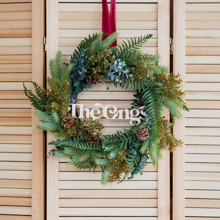 Evergreen - Christmas Wreath with Personalised Family Plaque