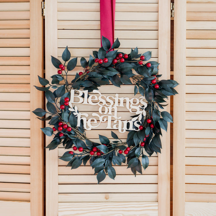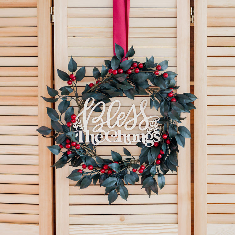 Peace - Christmas Wreath with Personalised Family Plaque