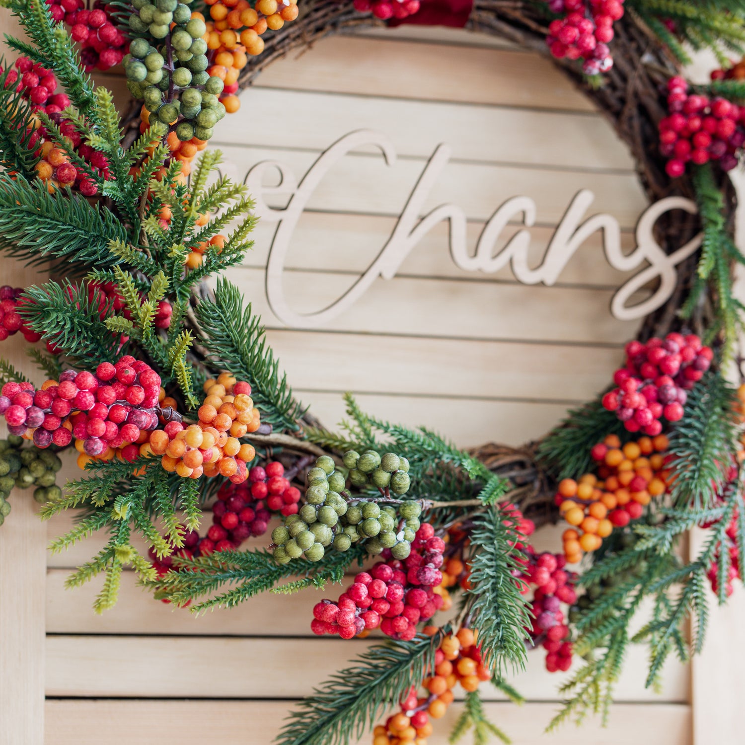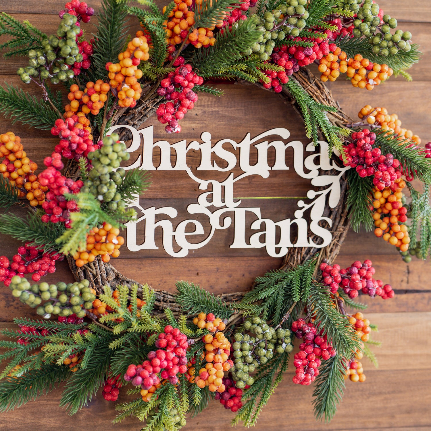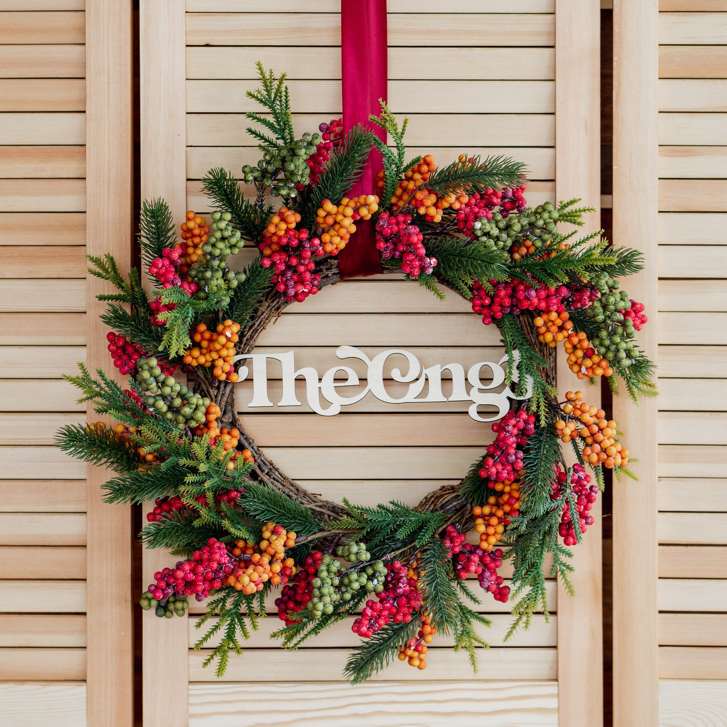 Merry - Christmas Wreath with Personalised Family Plaque