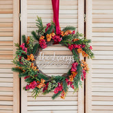 Add sweet Christmas touch to your home. Abundantly embellished with colourful elements, our Christmas Wreath adds a cosy touch to doorways, walls, and porches.