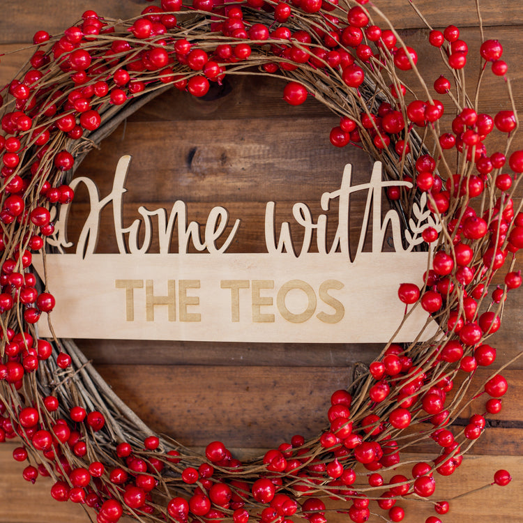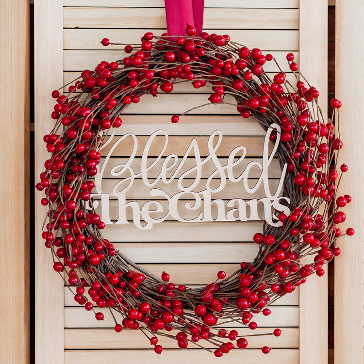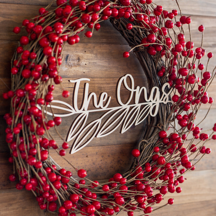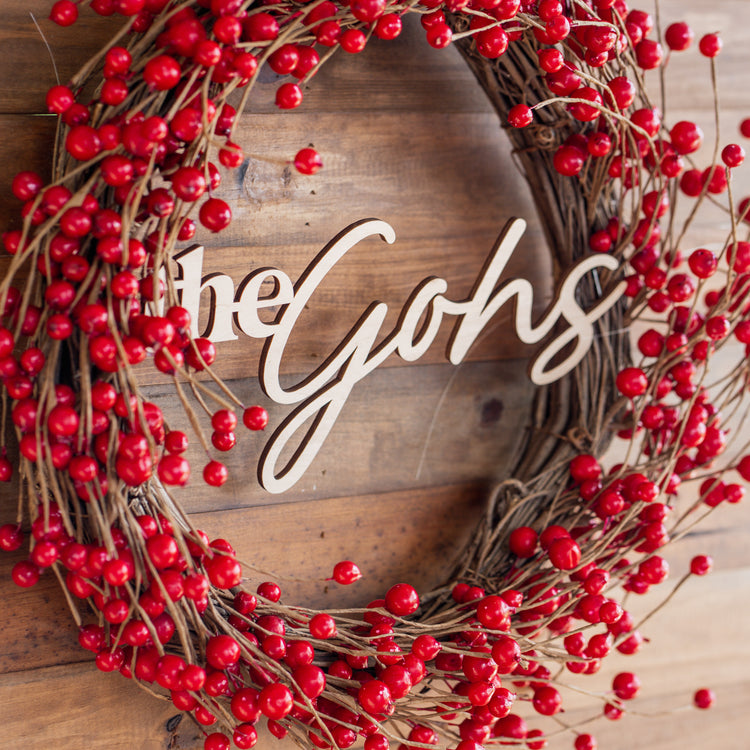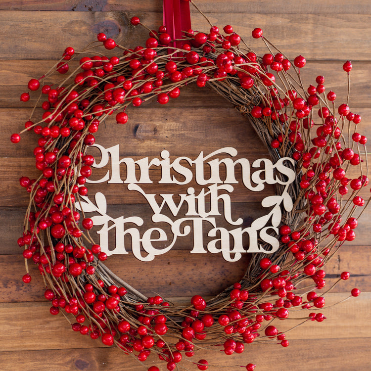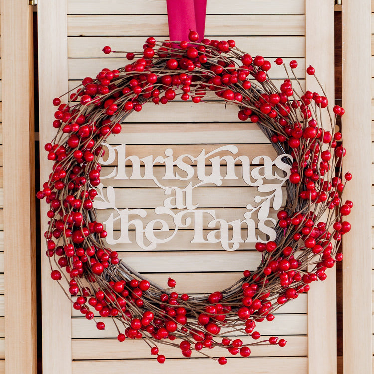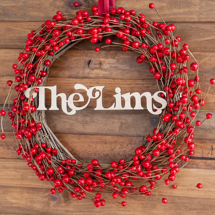Red Berry - Christmas Wreath with Personalised Family Plaque