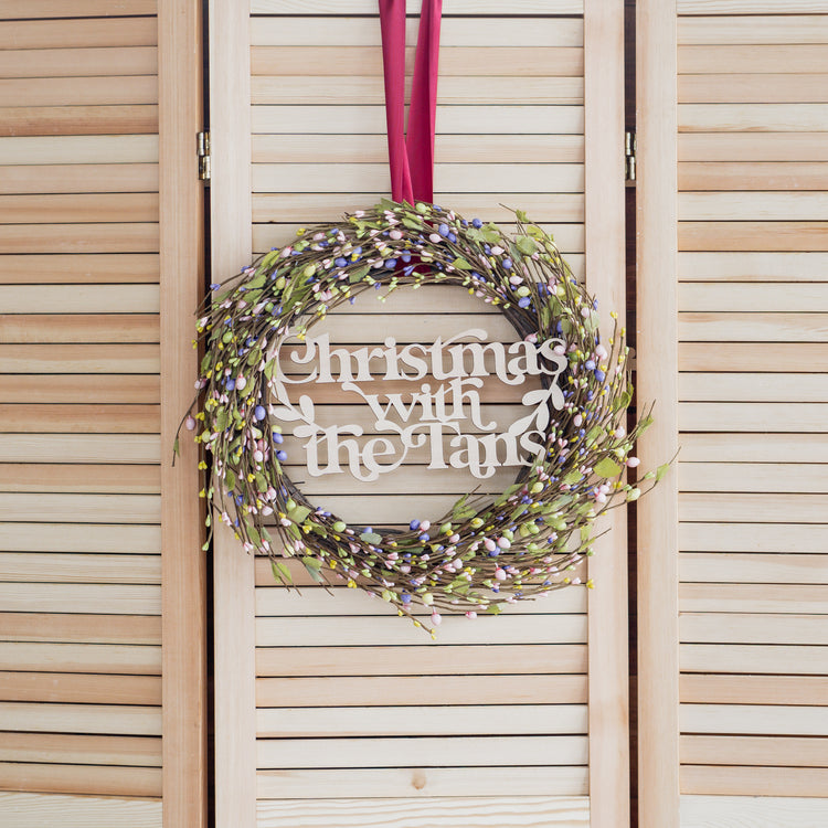 Green Mistletoe - Christmas Wreath with Personalised Family Plaque