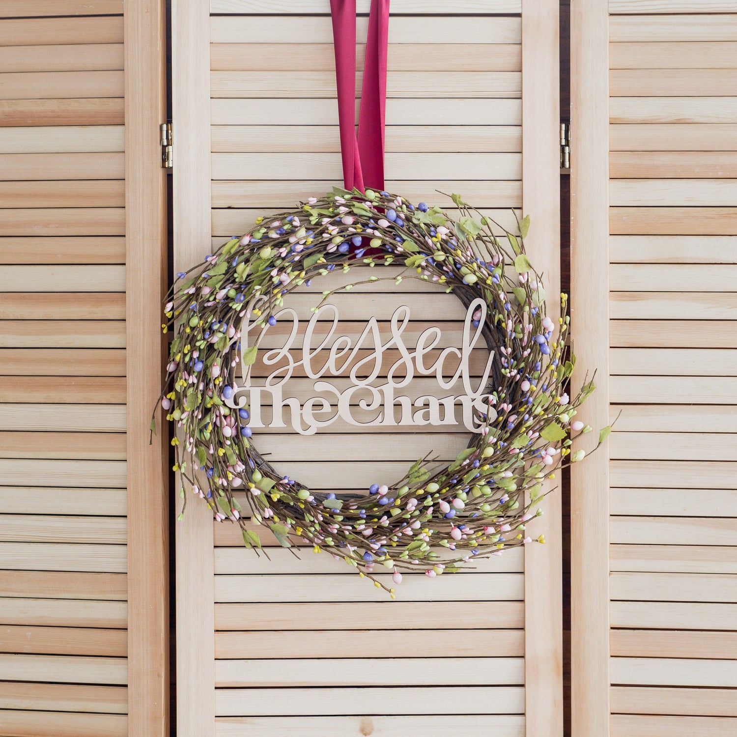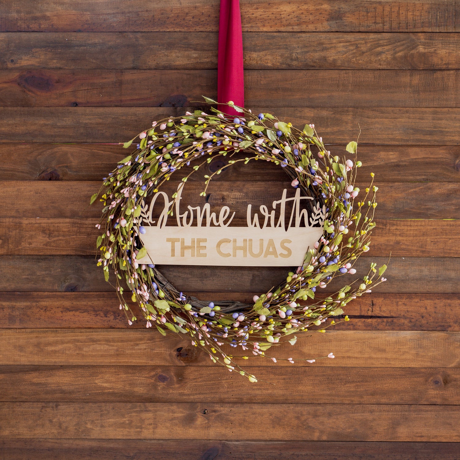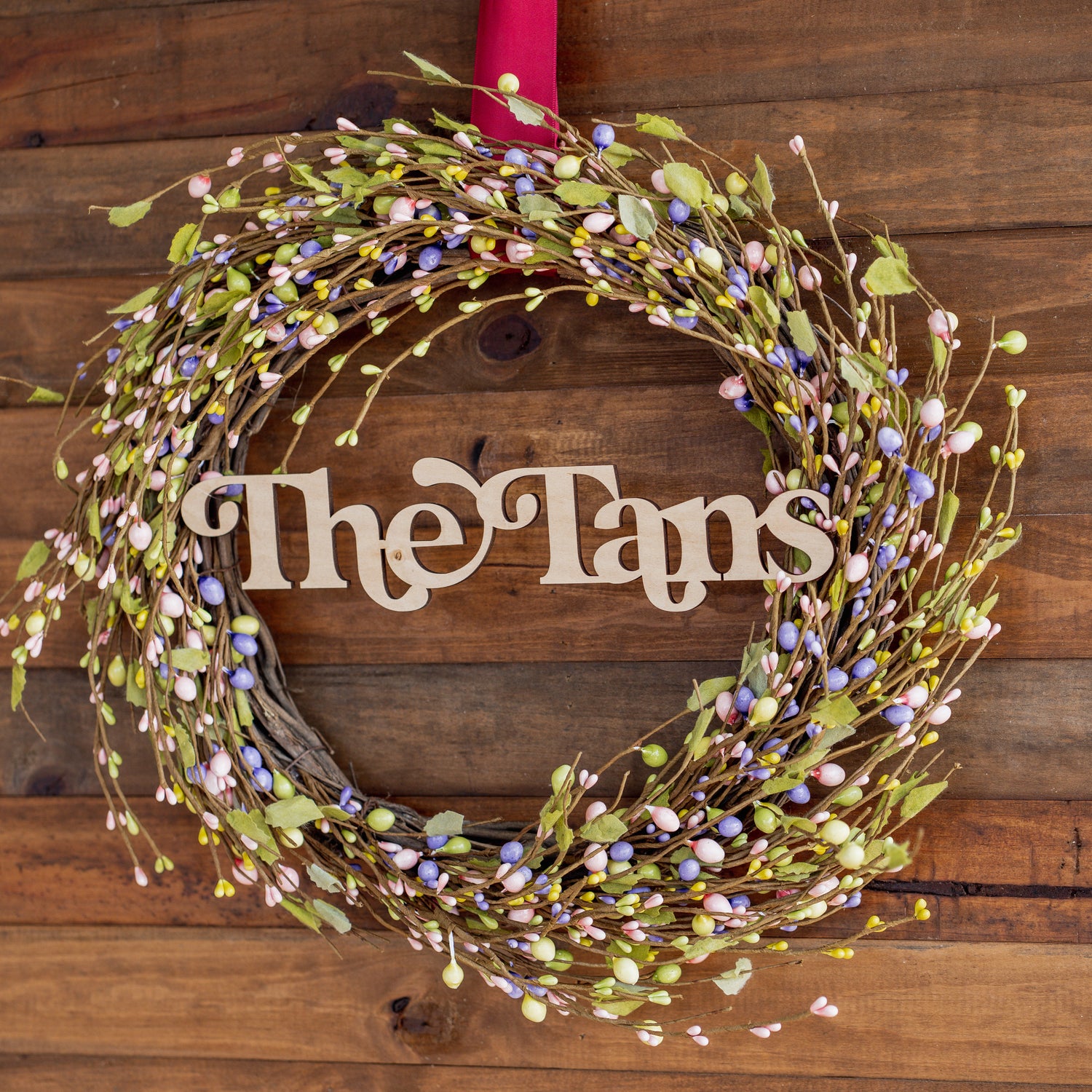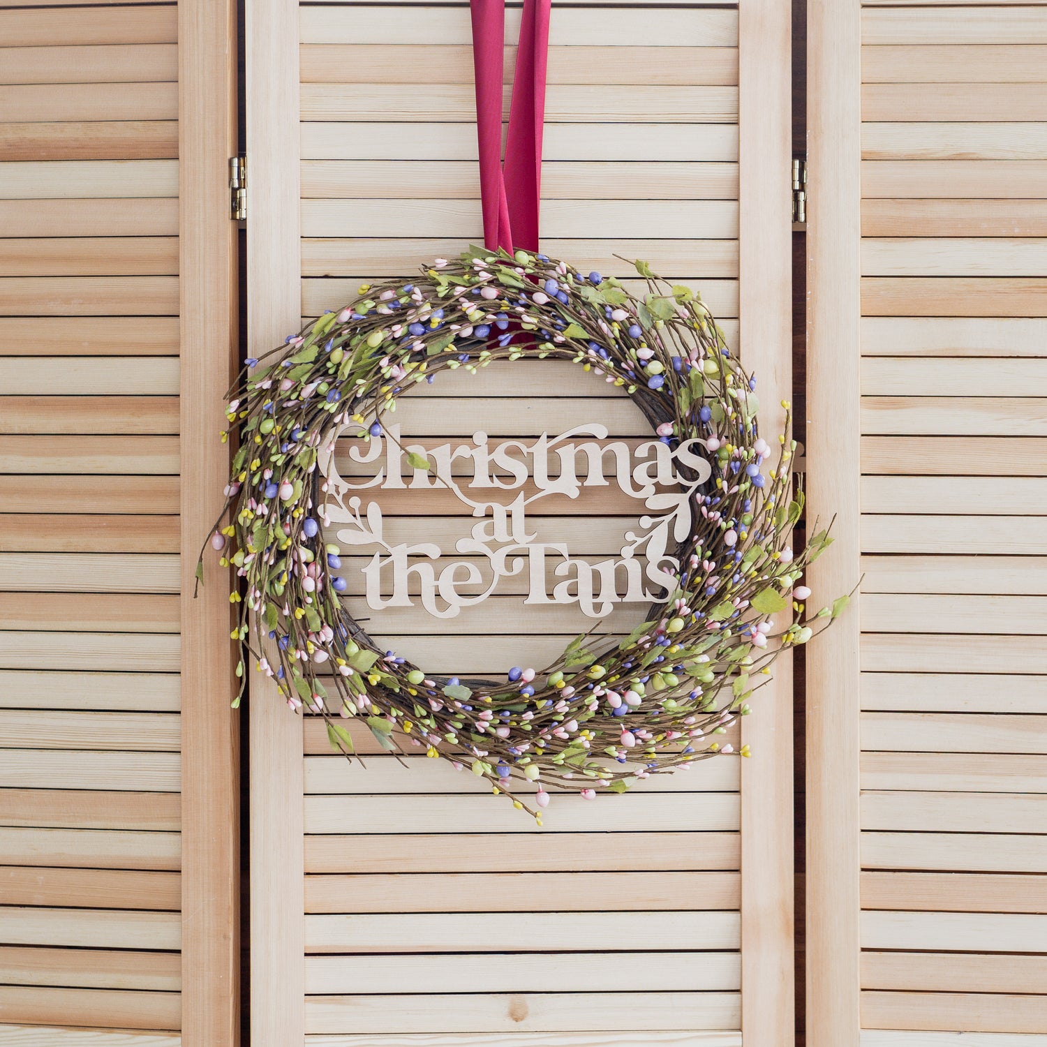 Green Mistletoe - Christmas Wreath with Personalised Family Plaque